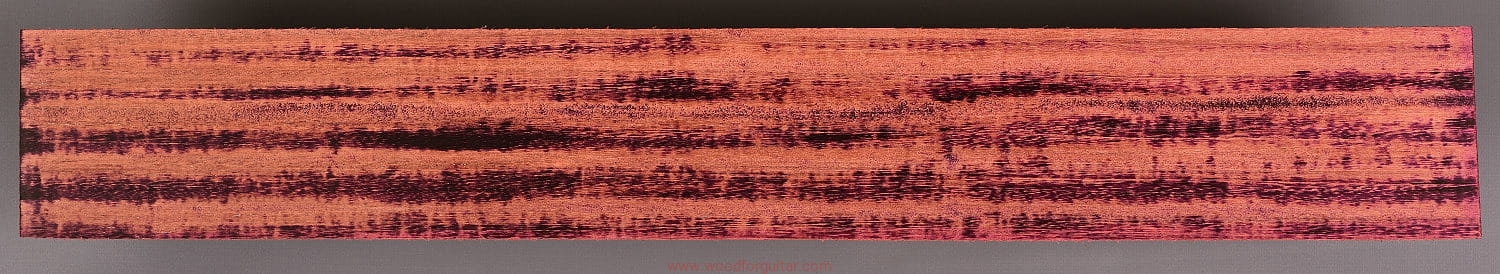 (1 kawałek drewna amarant o jakości *** - informacje na temat klas jakości drewna amarant przedstawiono w dalszej części opisu. Widoczne na zdjęciach ciemniejsze plamy i pręgi to miejsca przegrzane przez papier ścierny, raczej do usunięcia w dalszej części obróbki... i niech to od razu będzie przestrogą: ten gatunek drewna, pomimo bardzo dużej twardości i zwartości, łatwo zalepia papier ścierny przy obróbce maszynowej, sugerujemy ręczną obróbkę wykończającą lub ustawienia najniższych obrotów w szlifierce, frezarce oraz szybszy przesuw drewna. Ponieważ drewno to łatwo „przypalić”, może to też stać się okazją do oryginalnego wykończenia podstrunnicy. Przedziwne drewno... Uwaga, jeżeli po szlifowaniu drewno stanie się szaro-beżowe, zupełnie nieatrakcyjne wizualnie, proszę się nie martwić :), już po 2-3 tygodniach stanie się ponownie intensywnie różowo-fioletowe... aby po 2-3 latach stać się brązowym-czekoladowym z amarantową poświatą)…