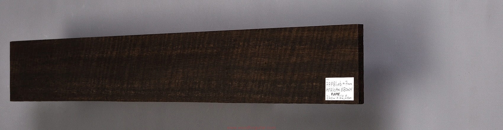 (1 kawałek drewna sezonowanego od roku 2010, heban afrykański falisty, kolorystyka czarna z jaśniejszymi pręgami. Długość wystarczająca tylko do ewentualnego zastosowania w gitarze basowej z 20 progami!)…
