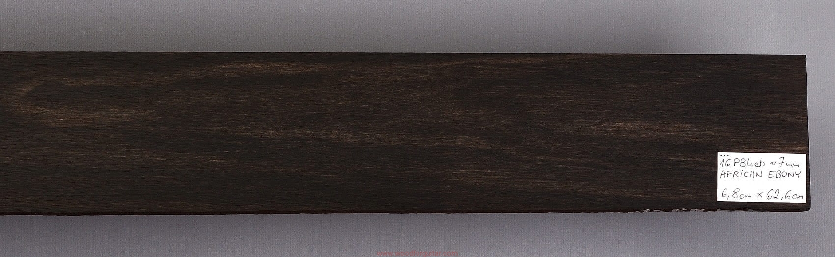 (1 kawałek drewna sezonowanego od roku 2010, heban afrykański, kolorystyka czarna z jaśniejszymi pręgami. Długość wystarczająca tylko do ewentualnego zastosowania w gitarze basowej z 20 progami!)…