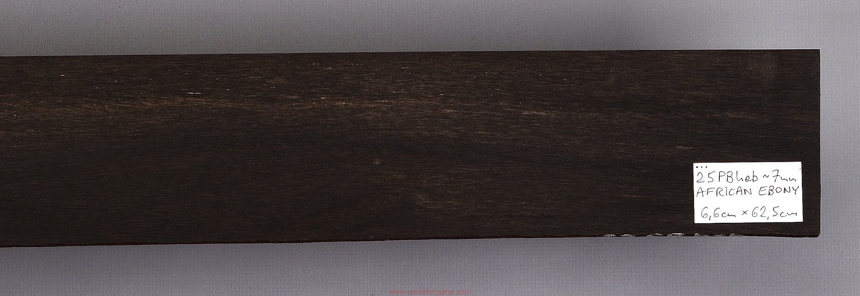 (1 kawałek drewna sezonowanego od roku 2010, heban afrykański, kolorystyka czarna z jaśniejszymi pręgami. Długość wystarczająca tylko do ewentualnego zastosowania w gitarze basowej z 20 progami!)…