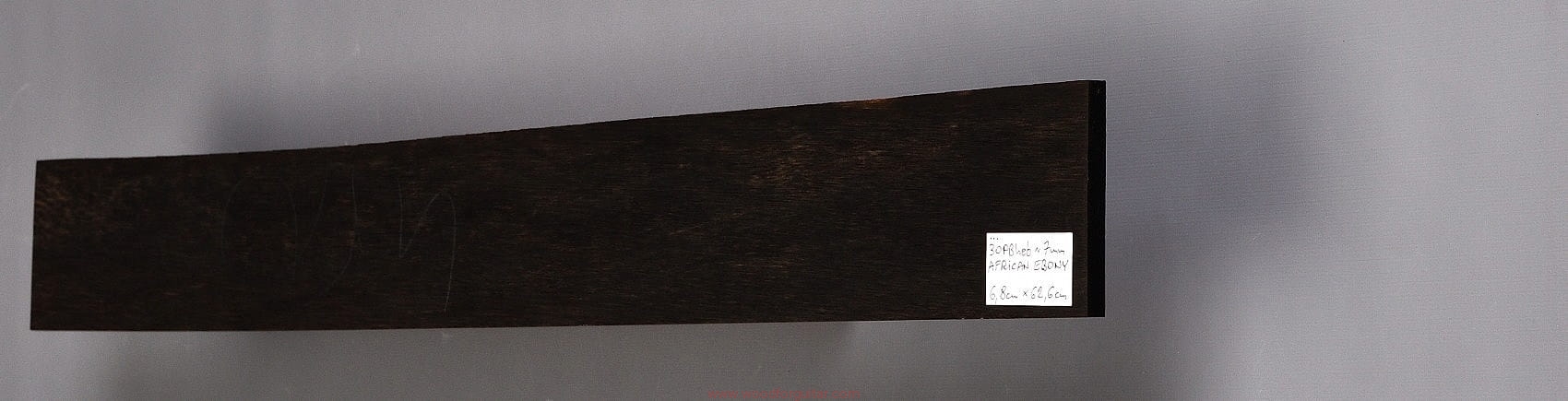 (1 kawałek drewna sezonowanego od roku 2010, heban afrykański, kolorystyka czarna z jaśniejszymi pręgami. Długość wystarczająca tylko do ewentualnego zastosowania w gitarze basowej z 20 progami!)…