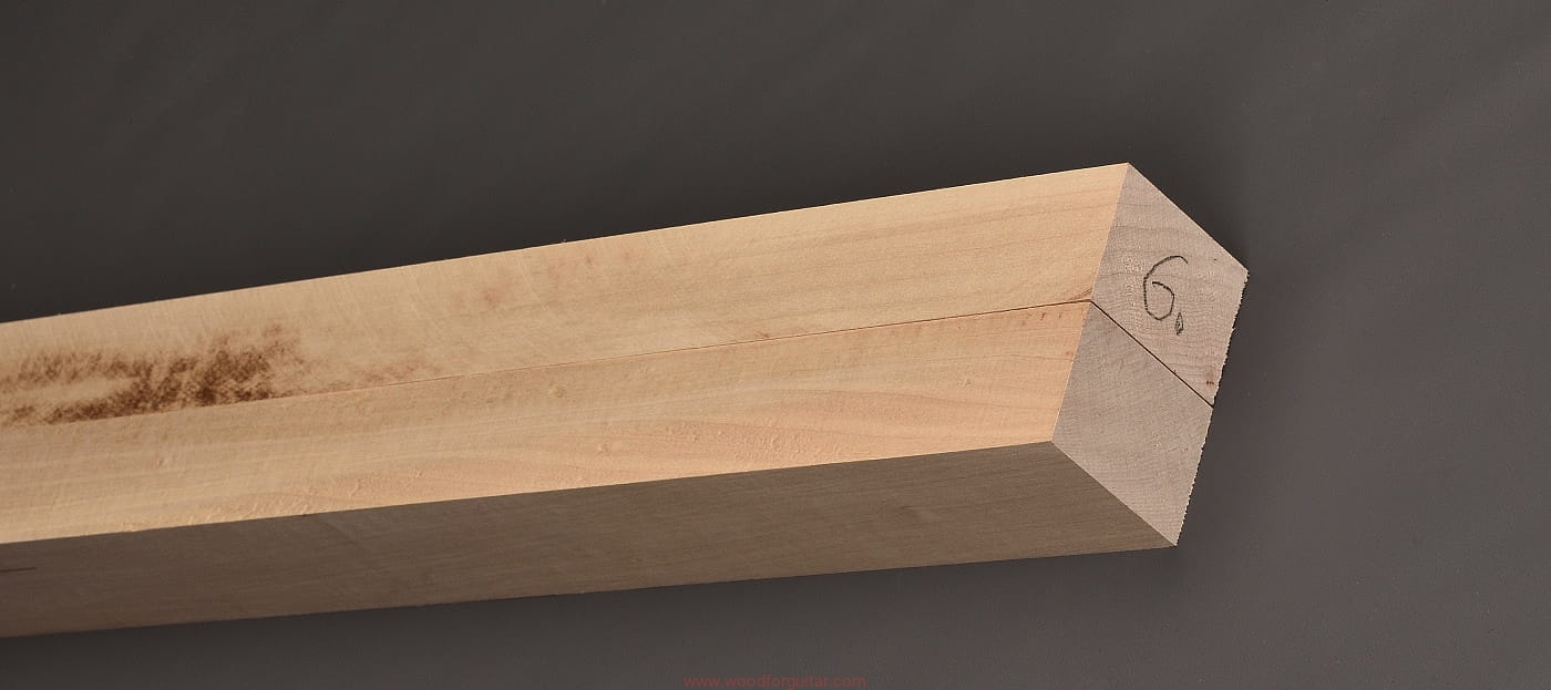 z przeznaczeniem na gryf lub część gryfu typu Neck Through Body gitary lub gitary basowej lub innego instrumentu, w ramach którego można wykorzystać przedstawiony materiał. Zdjęcia dotyczą tego konkretnego numerowanego zestawu. Drewno ma wstępnie oszlifowane powierzchnie i jest gotowe do użycia. Dostosowanie wymiarów do własnych celów należy przeprowadzić samodzielnie. Jak zawsze w przypadku pracy z drewnem, zalecamy zaaklimatyzowanie go w miejscu docelowym przez okres kilku tygodni. Każdy, nawet najbardziej stabilny gatunek drewna nie jest obojętny na zmiany wilgotności, temperatury i innych czynników zewnętrznych.