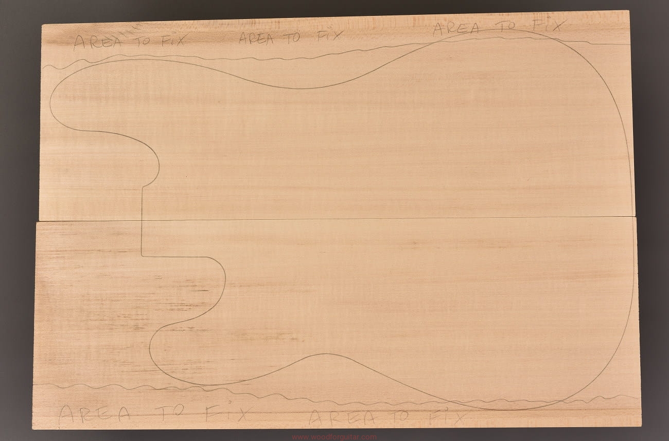 (2-częściowy zestaw średniej gęstości drewna lipowego, wielkość wystarczająca na korpus typu Precission lub Strat. UWAGA – w zaznaczonych miejscach rozwarstwienia wzdłuż krawędzi – do sklejenia/wypełnienia/naprawy. Polecamy na wysokiej klasy custom’ową gitarę lub bas do heavy metalu, sugerujemy dodatkowe użycie ciętego „w ćwiartkę” klonu średniej gęstości na gryf, wraz z podstrunnicą hebanową)…
