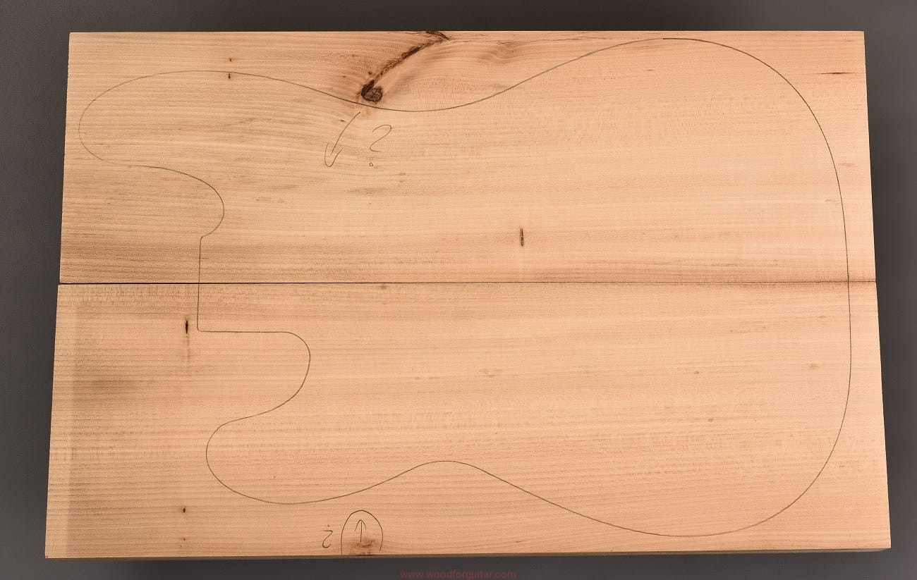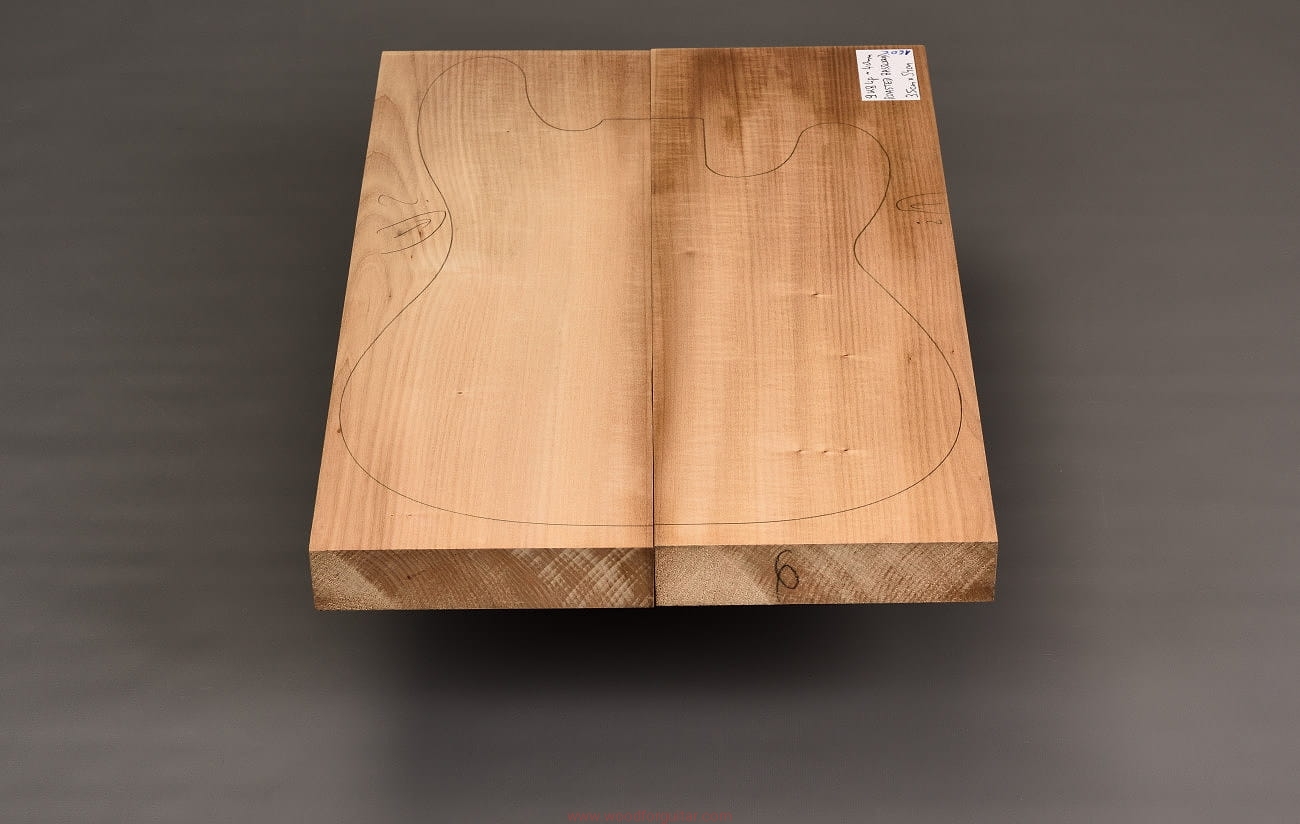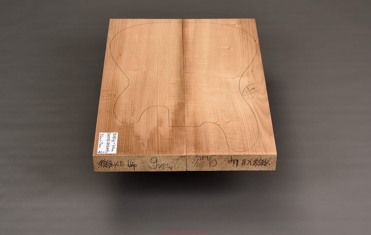 z przeznaczeniem na korpus gitary elektrycznej, basowej lub innego instrumentu, w ramach którego można wykorzystać przedstawiony zestaw. Zdjęcia dotyczą tego konkretnego numerowanego zestawu drewna. Drewno jest wstępnie oszlifowane powierzchniowo papierem ściernym i jest gotowe do użycia. Klejenie i dostosowanie wymiarów do własnych celów należy przeprowadzić samodzielnie. Jak zawsze w przypadku pracy z drewnem, zalecamy zaaklimatyzowanie produktu w miejscu docelowym przez okres kilku tygodni. Każdy, nawet najbardziej stabilny gatunek drewna nie jest obojętny na zmiany wilgotności, temperatury i innych czynników zewnętrznych.