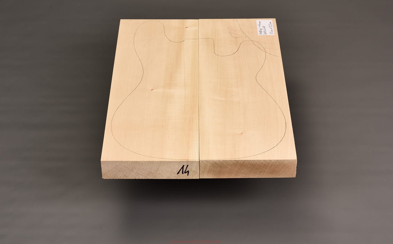 z przeznaczeniem na korpus gitary elektrycznej, basowej lub innego instrumentu, w ramach którego można wykorzystać przedstawiony produkt. Zdjęcia dotyczą tego konkretnego numerowanego zestawu drewna. Drewno jest wstępnie oszlifowane powierzchniowo papierem ściernym i jest gotowe do użycia. Klejenie i dostosowanie wymiarów do własnych celów należy przeprowadzić samodzielnie. Jak zawsze w przypadku pracy z drewnem, zalecamy zaaklimatyzowanie produktu w miejscu docelowym przez okres kilku tygodni. Każdy, nawet najbardziej stabilny gatunek drewna nie jest obojętny na zmiany wilgotności, temperatury i innych czynników zewnętrznych.