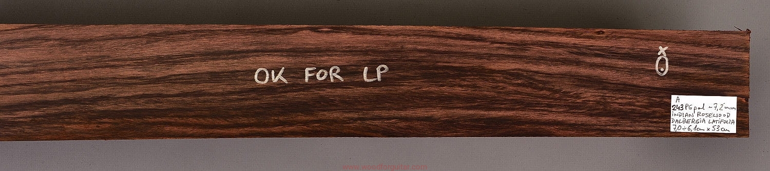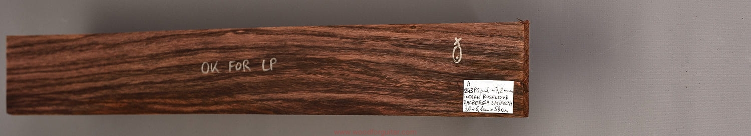 Bardzo popularne i klasyczne drewno, używane od lat głównie na podstrunnice w gitarach elektrycznych, basowych oraz akustycznych. Jak wskazuje nazwa, pochodzi głównie z Indii, ale także rośnie i jest pozyskiwane na Sri Lance oraz w Indonezji. Tonalnie palisander indyjski jest określany jako ciepłobrzmiący, nie oznacza to jednak, że brakuje mu tzw. góry. Kiedy potrzeba generuje zaokrąglone łagodnie brzmiące wysokie przydźwięki i idealnie sprawdza się w instrumentach przeznaczonych do muzyki bluesowej, rockowej lub w instrumentach uniwersalnych. Drewno jest stosunkowo tanie (raczej już niestety było tanie), jednak wysokiej klasy kawałki osiągają ceny porównywalne z czarnym hebanem, dotyczy to również kawałków unikalnych, o specyficznych cechach. Kawałek na podstrunnicę może kosztować 15 dolarów, ale może też kosztować 50 dolarów oraz więcej. Wygląd palisandra indyjskiego lubi się znacznie różnić. W zależności m.in. od warunków w jakich rosło drzewo, drewno przybiera barwę prawie czarną z ciemno-brązowymi pręgami, najczęściej jednak ma charakterystyczne zabarwienie brązowe, przechodzące w ciemny fiolet, czasami z jaśniejszymi beżowo-żółto-czerwonymi akcentami/pasami. Łatwe w obróbce, pięknie pachnie, a z powodu dużej zawartości olejków własnych nie wymaga lakierowania. W gotowym instrumencie do czyszczenia i impregnowania wystarczy tylko używać popularnego olejku cytrynowego. Po wyszlifowaniu jest aksamitne w dotyku z wyczuwalnymi porami. Drewno jest mocne, twarde, odporne na ścieranie, pory drewna są dosyć duże i szerokie. Palisander indyjski to wspaniałe i magiczne drewno, które słyszymy w muzyce od pokoleń. Niestety, wieloletnie niekontrolowane masowe wycinki drzew tego gatunku doprowadziły do zbyt daleko posuniętego zaniku palisandra indyjskiego w przyrodzie, dlatego podjęto decyzję o objęciu tego gatunku szczególną ochroną i wpisaniu go na listę gatunków zagrożonych (CITES). Sprzedaż gatunku Dalbergia latifolia prowadzimy tylko do krajów Unii Europejskiej, proszę mieć na uwadze, że wszelkie przekroczenia granicy UE instrumentu z nawet niewielkim elementem wykonanym z tego drewna z/do Unii Europejskiej wymagają specjalnych pozwoleń Ministerstwa Środowiska lub odpowiednika tej instytucji w danym kraju. Brak pozwoleń skutkuje zarekwirowaniem drewna lub całego instrumentu przez służby celne.