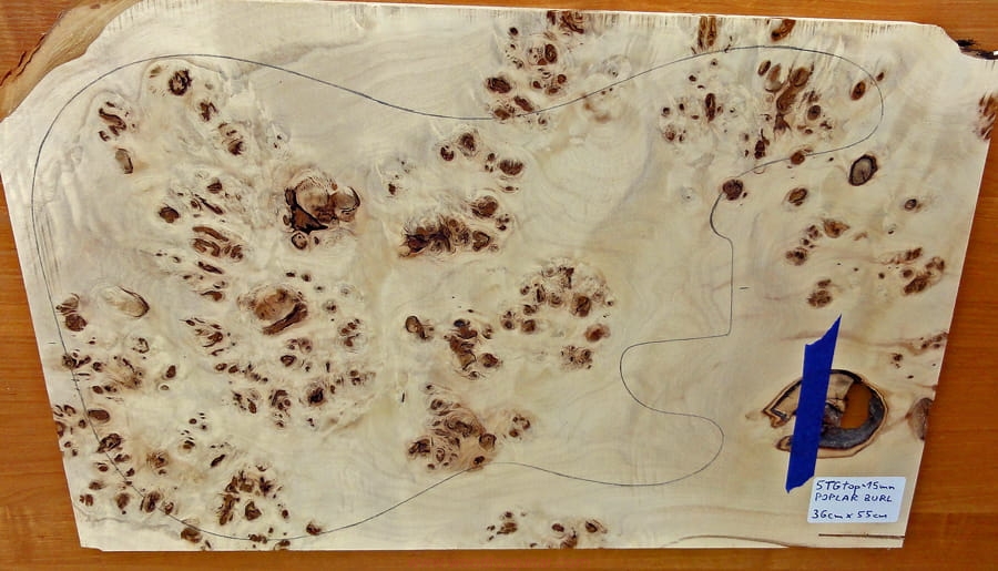 Drewno TOPOLA CZECZOTA na 1-cz top gitary basowej, 15 mm