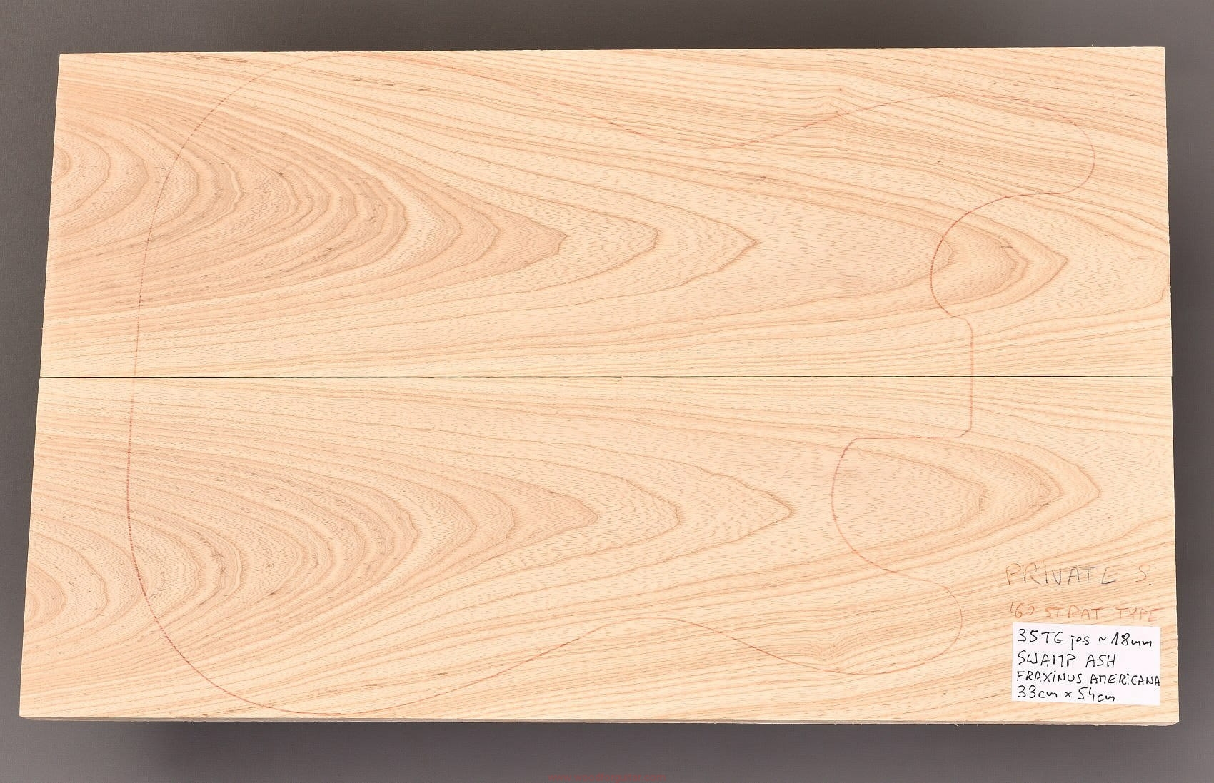 (2-częściowy zestaw wysokiej klasy drewna jesionu bagiennego wysokiej gęstości, pochodzenie: dzikie okresowe bagna stanu Luizjana, rysunek przedstawia kształt korpusu typu ’60 Strat. Polecamy do customowego instrumentu z górnej półki)…