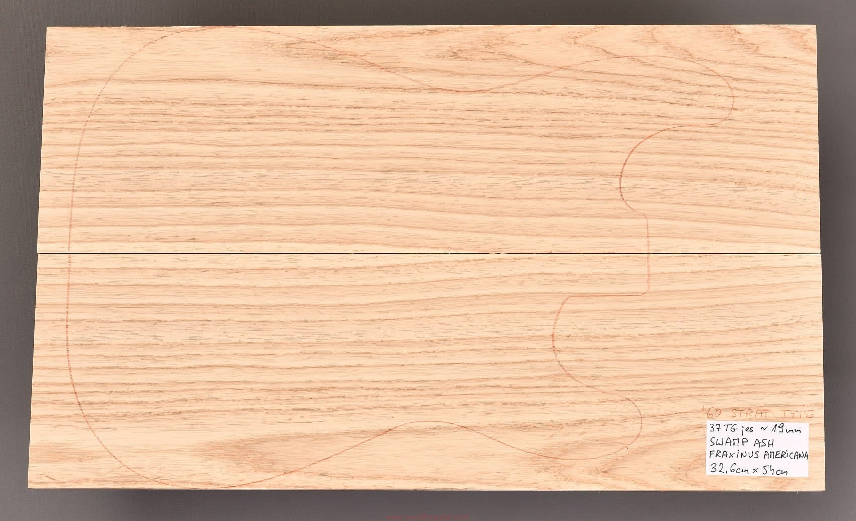(2-częściowy zestaw wysokiej klasy drewna jesionu bagiennego wysokiej gęstości, pochodzenie: dzikie okresowe bagna stanu Luizjana, rysunek przedstawia kształt korpusu typu ’60 Strat. Polecamy do customowego instrumentu z górnej półki)…