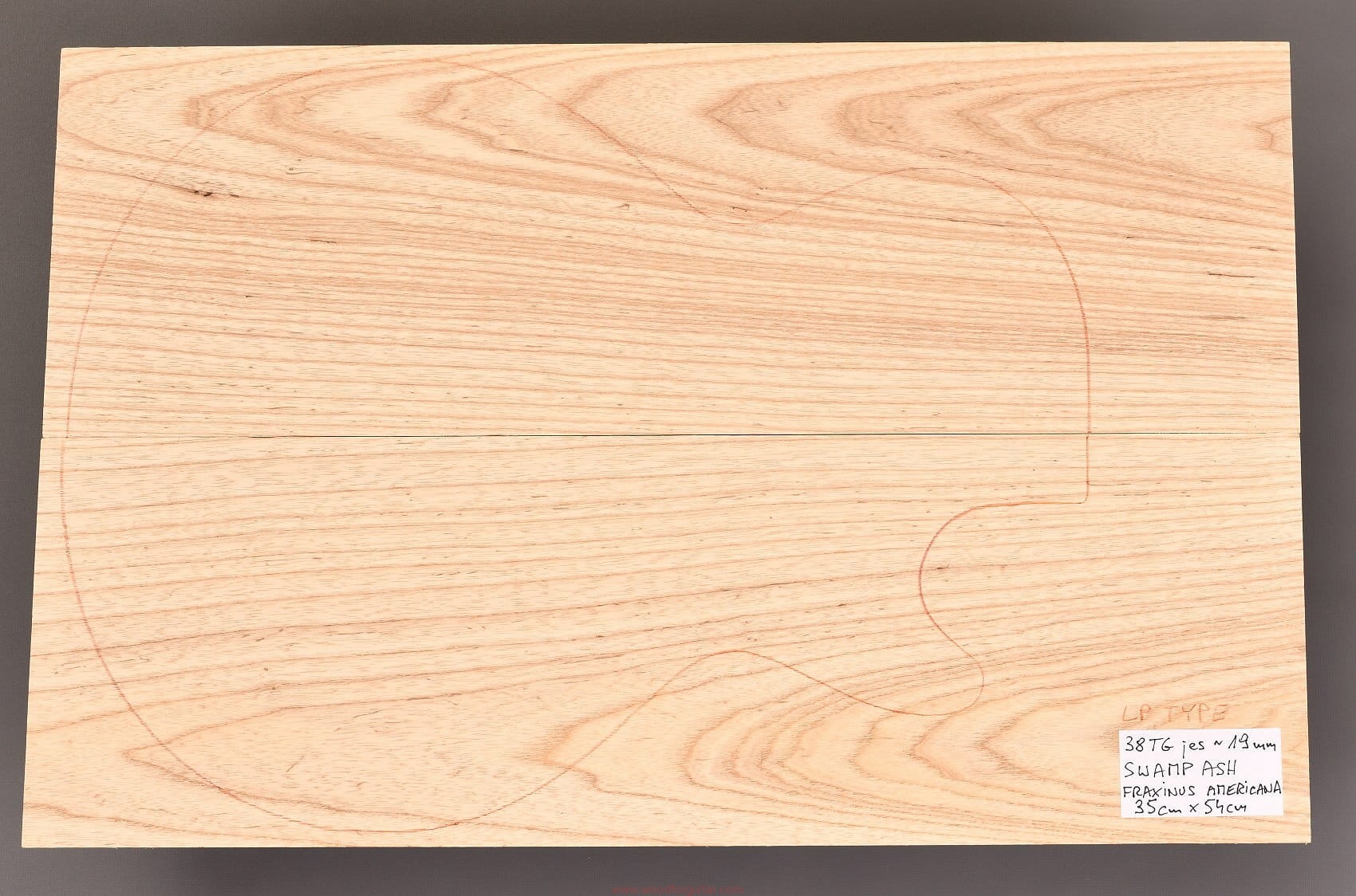 (2-częściowy zestaw wysokiej klasy drewna jesionu bagiennego wysokiej gęstości, pochodzenie: dzikie okresowe bagna stanu Luizjana, rysunek przedstawia kształt korpusu typu Les Paul. Polecamy do customowego instrumentu z górnej półki)…
