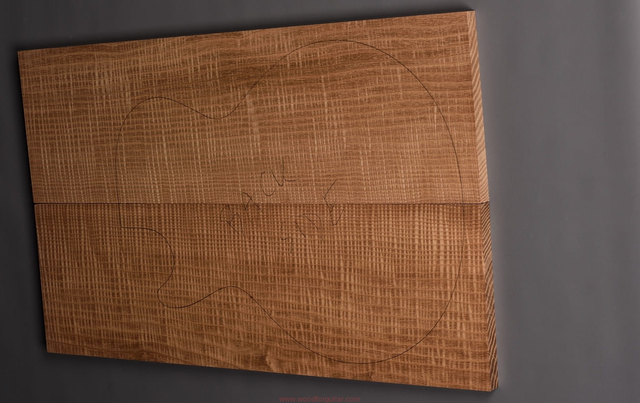 z przeznaczeniem na top gitary, basu lub innego instrumentu, w ramach którego można wykorzystać przedstawiony kawałek. Zdjęcia dotyczą tego konkretnego numerowanego zestawu. Drewno jest wstępnie oszlifowane powierzchniowo papierem ściernym i jest gotowe do użycia. Klejenie i dostosowanie wymiarów do własnych celów należy przeprowadzić we własnym zakresie. Jak zawsze w przypadku pracy z drewnem, zalecamy zaaklimatyzowanie produktu w miejscu docelowym przez okres kilku tygodni. Każdy, nawet najbardziej stabilny gatunek drewna nie jest obojętny na zmiany wilgotności, temperatury i innych czynników zewnętrznych.