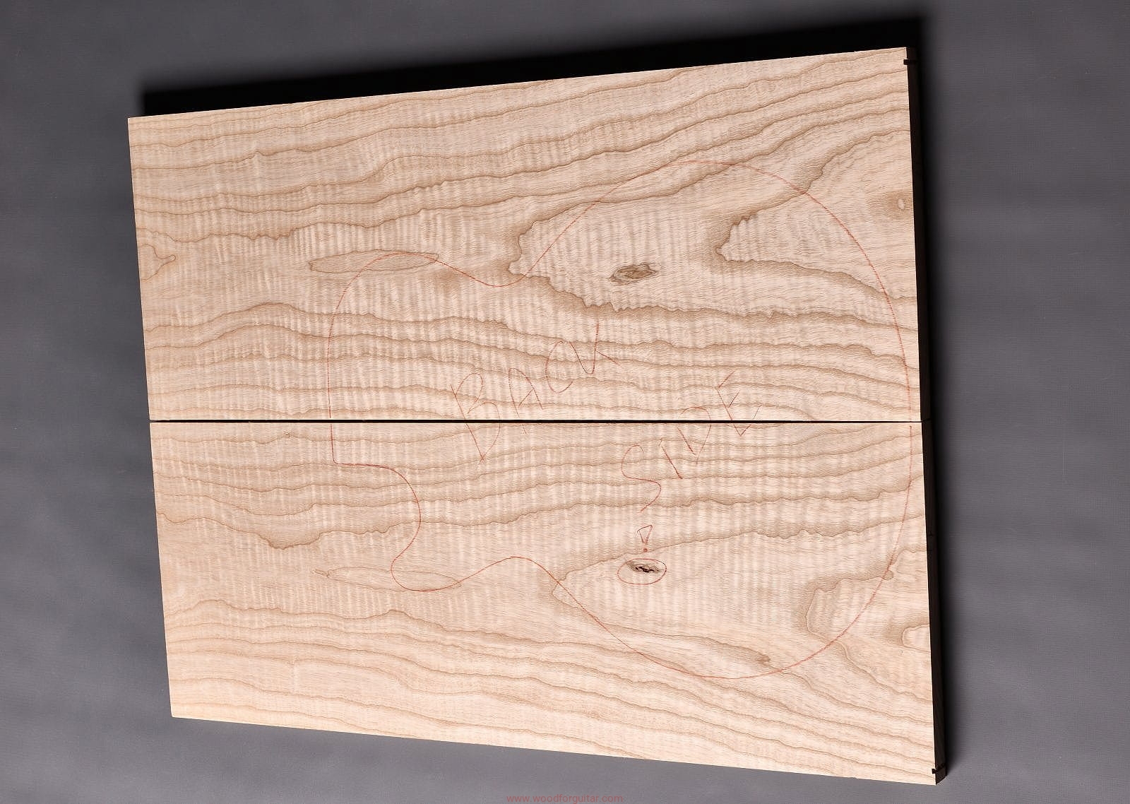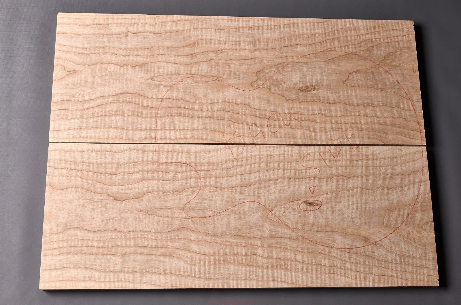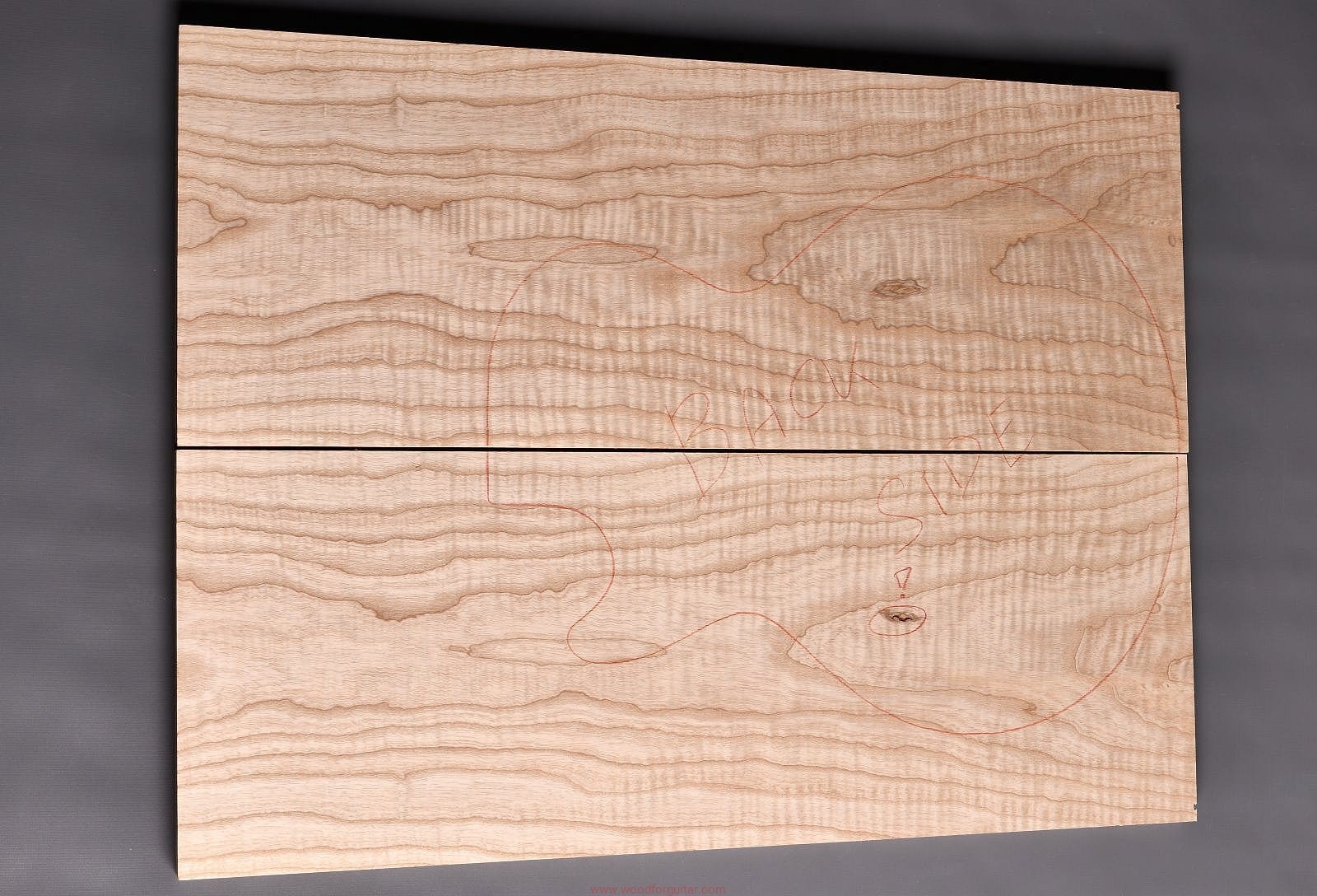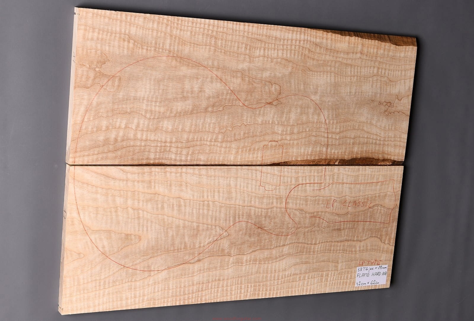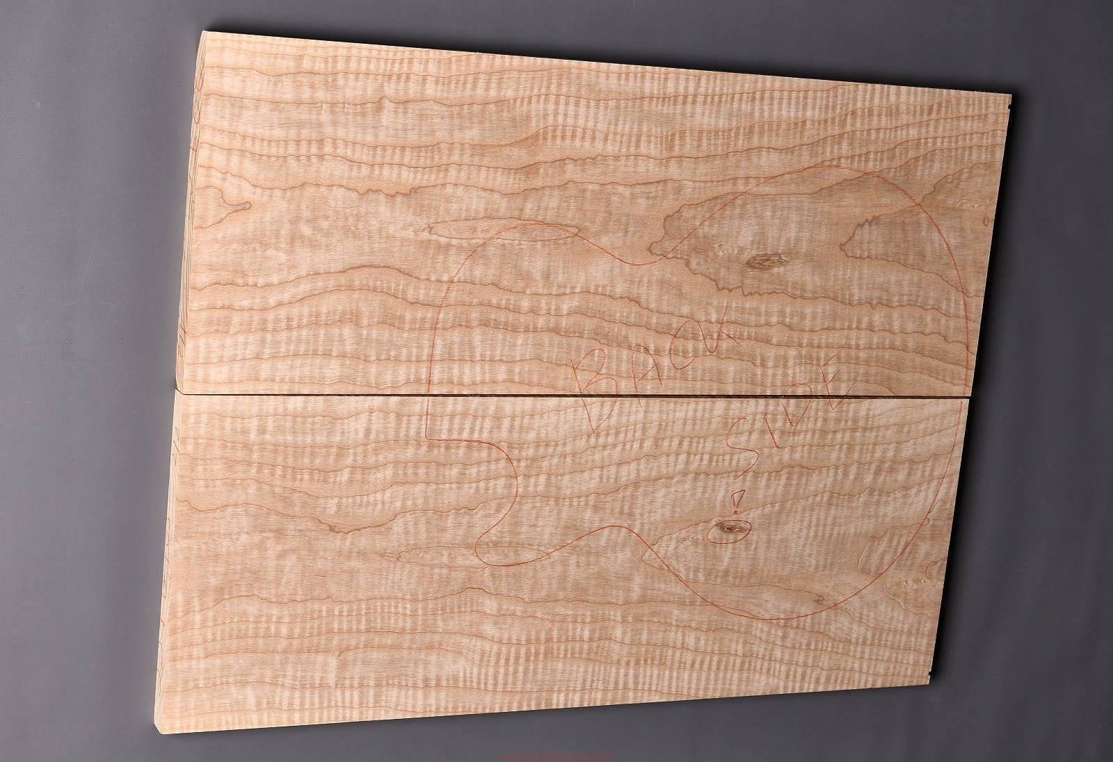 (2-częściowy zestaw wysokiej klasy drewna jesionowego falistego wysokiej gęstości, wielkość wystarczająca do większości projektów jako top korpusu, rysunek przedstawia kształt korpusu typu Les Paul. Polecamy do customowego instrumentu z górnej półki. Uwaga, od tylnej strony zaznaczona wada drewna do samodzielnej naprawy)…