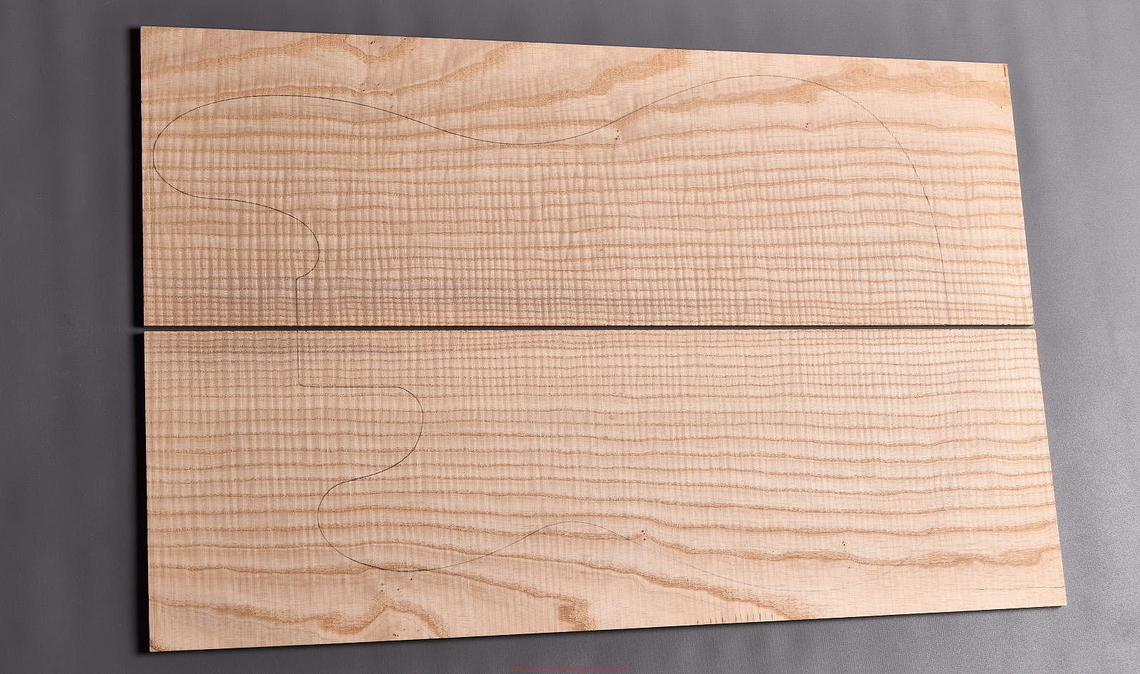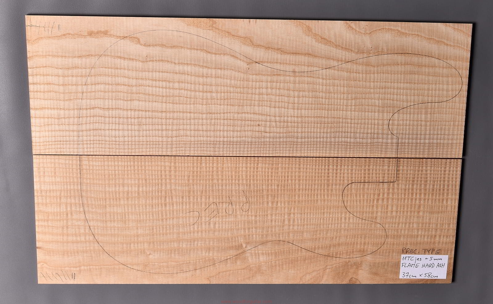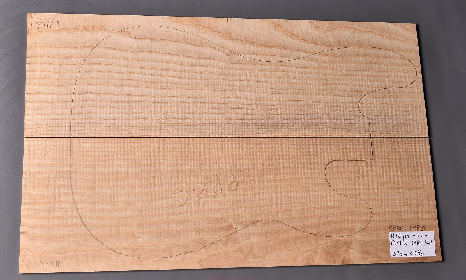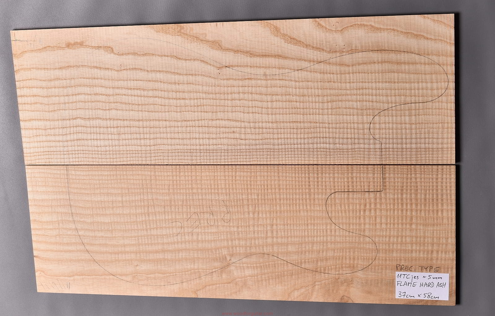 (2-częściowy zestaw wysokiej klasy drewna jesionowego falistego wysokiej gęstości, wielkość wystarczająca do większości projektów jako top korpusu, rysunek przedstawia kształt korpusu typu Precission Bass. Polecamy do customowego instrumentu z górnej półki)…