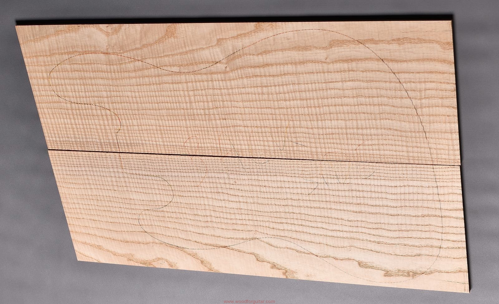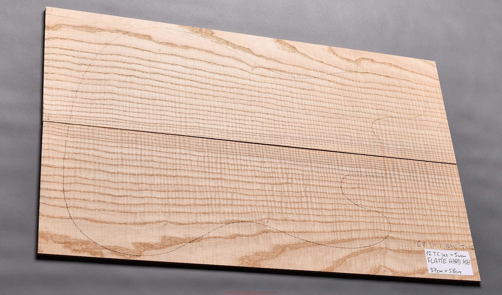 (2-częściowy zestaw wysokiej klasy drewna jesionowego falistego wysokiej gęstości, wielkość wystarczająca do większości projektów jako top korpusu, rysunek przedstawia kształt korpusu typu ’68 Jazz Bass. Polecamy do customowego instrumentu z górnej półki)…