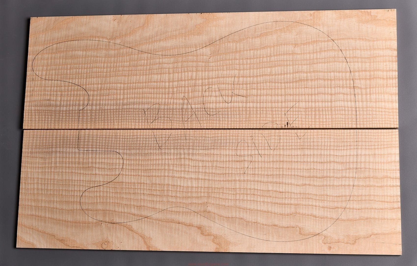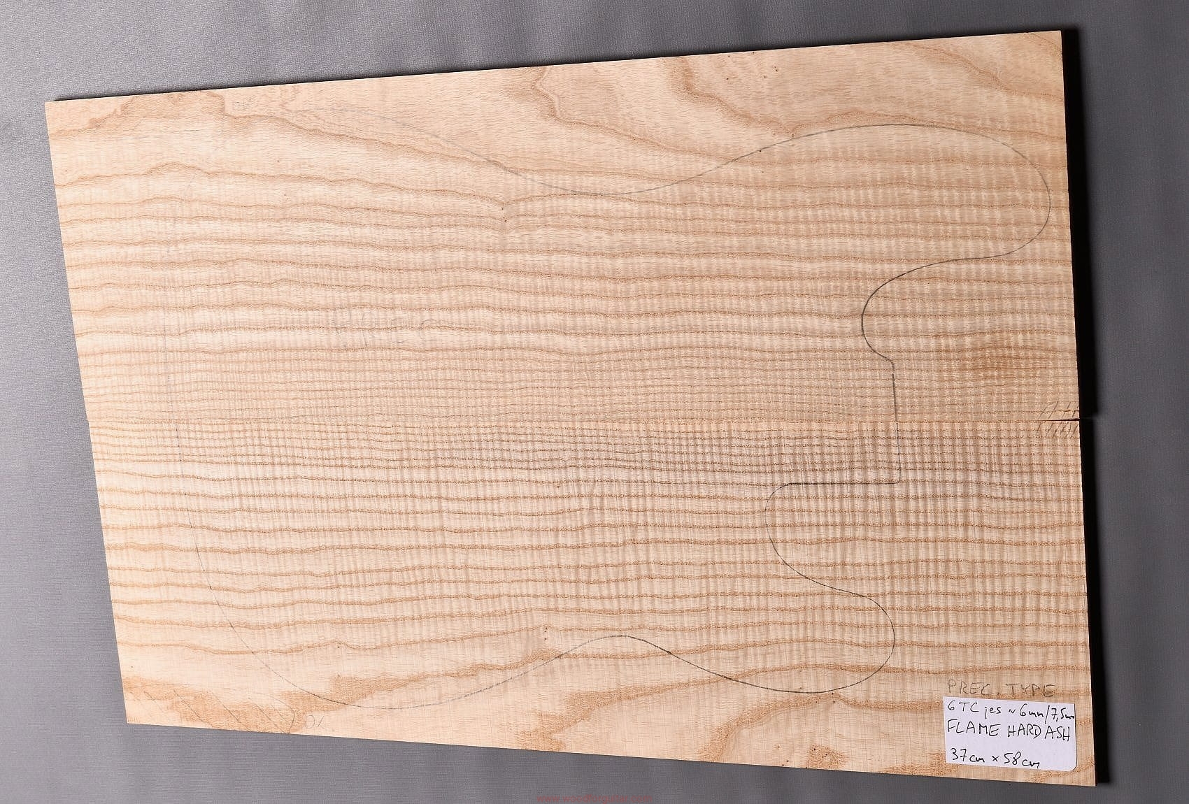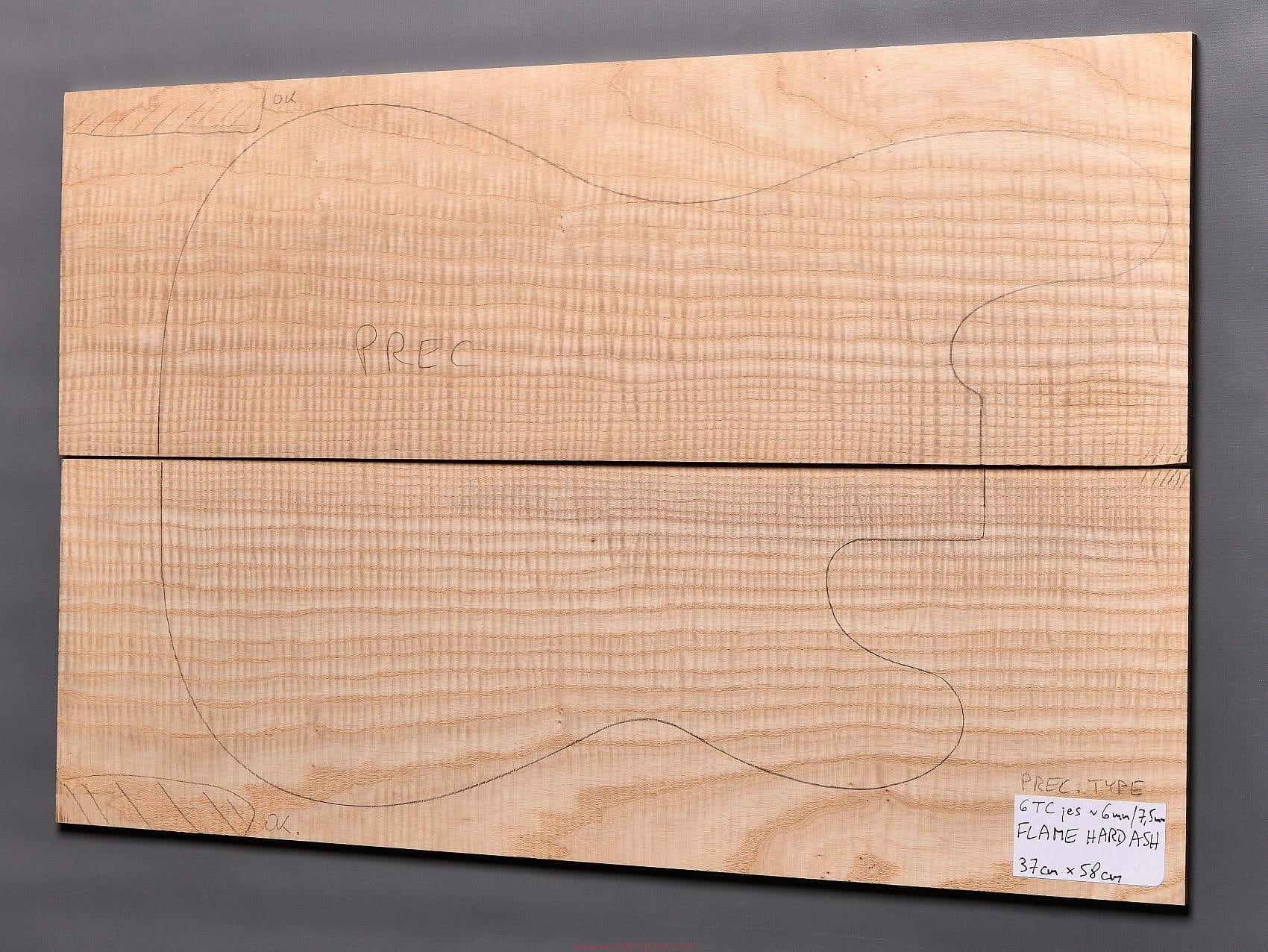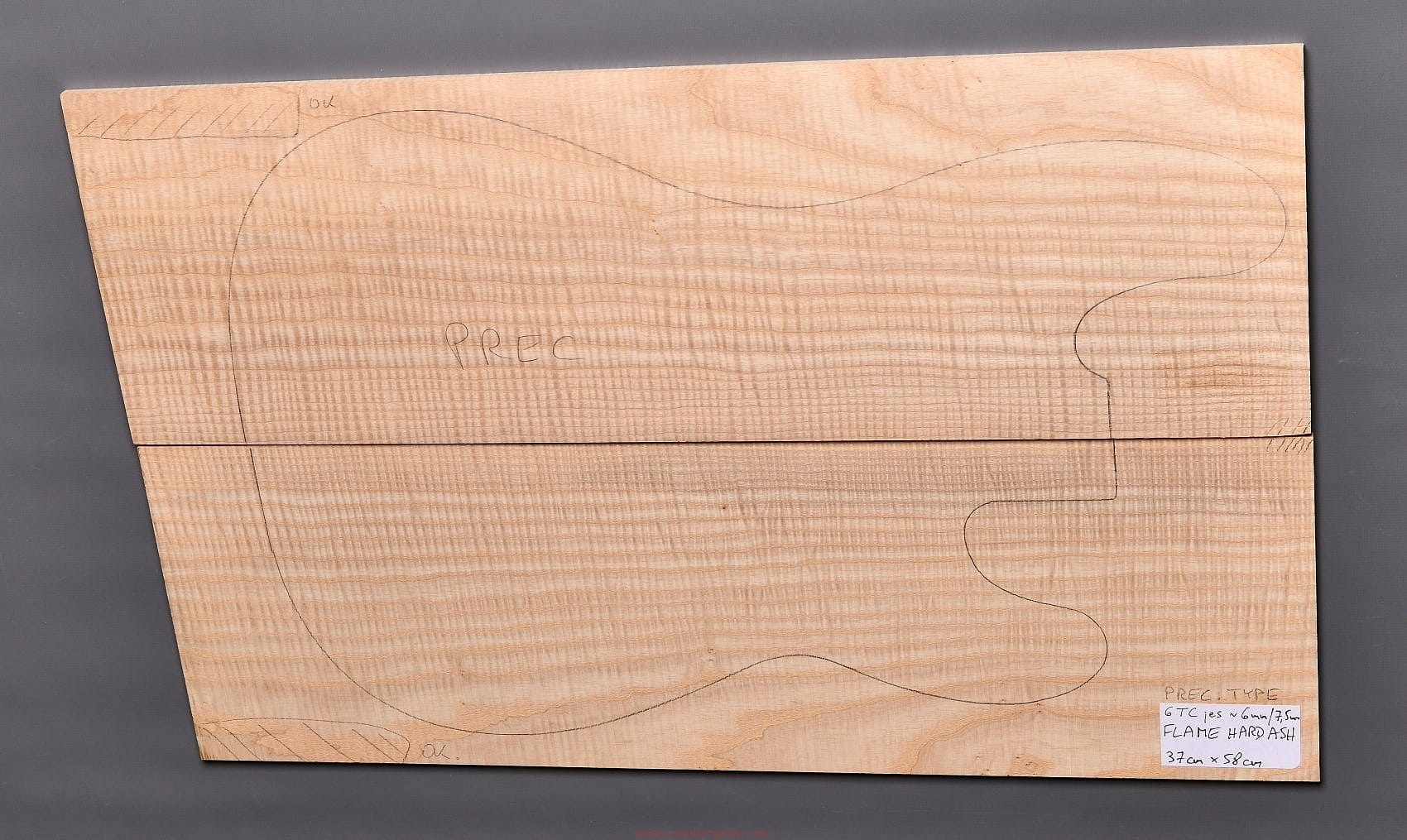 (2-częściowy zestaw wysokiej klasy drewna jesionowego falistego wysokiej gęstości, wielkość wystarczająca do większości projektów jako top korpusu, rysunek przedstawia kształt korpusu typu Precission Bass. Polecamy do customowego instrumentu z górnej półki. Uwaga, połówki mają różne grubości ok. 6,0 i 7,5 mm – to żeby nie było za prosto)…