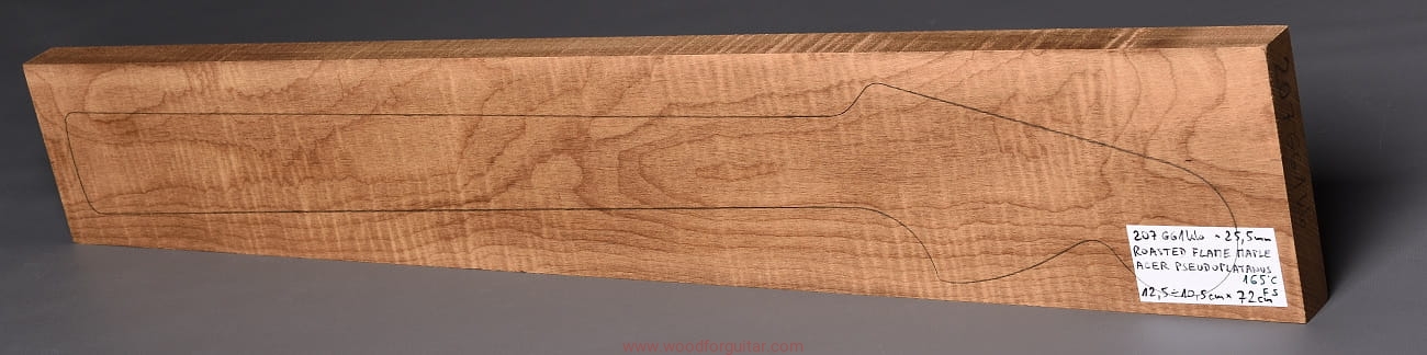 Klon w odmianie jawor występuje naturalnie głównie w górskich pasmach Europy środkowej. Do zastosowań muzycznych bardzo cenione jest drewno pochodzące z Karpat, a w szczególności klon wzorzysty płomienisty (falisty, tiger maple, flame maple, curly maple) lub ptasie oko (birdseye maple), powodem są doskonałe właściwości brzmieniowe oraz wygląd. Jako top w gitarze elektrycznej czy basowej nada klasycznej, zachwycającej szlachetności. Dotyczy to zarówno brzmienia jak i wrażeń wizualnych. Brzmieniowo wspaniale komponuje się z mahoniem, hebanem, Pau Ferro i palisandrem w różnych kombinacjach. Bardzo wzorzyste kawałki można wykończyć klasycznie lakierem bezbarwnym lub lekko bursztynowym lub też z zastosowaniem kontrastowych bejc z międzyszlifowaniami przed procesem lakierowania dla nadania większej głębi i odważnego wyglądu. Wspaniałe drewno, rewelacyjne brzmienie, klasyka.