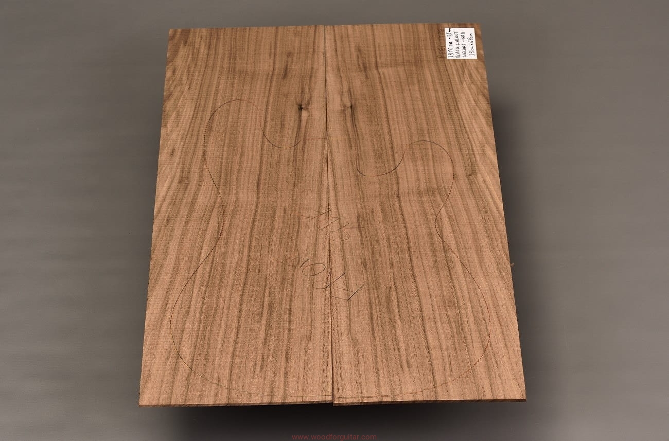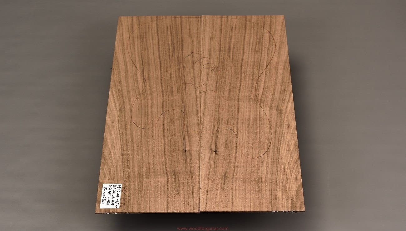 z przeznaczeniem na top korpusu gitary/basu lub innego instrumentu, w ramach którego można wykorzystać przedstawiony zestaw. Zdjęcia dotyczą tego konkretnego numerowanego zestawu drewna. Drewno jest suche, gotowe do zastosowania, powierzchnie są nieszlifowane, dostosowanie wymiarów do własnych celów należy przeprowadzić samodzielnie. Jak zawsze w przypadku pracy z drewnem, zalecamy zaaklimatyzowanie produktu w miejscu docelowym przez okres kilku tygodni. Każdy, nawet najbardziej stabilny gatunek drewna nie jest obojętny na zmiany wilgotności, temperatury i innych czynników zewnętrznych.
