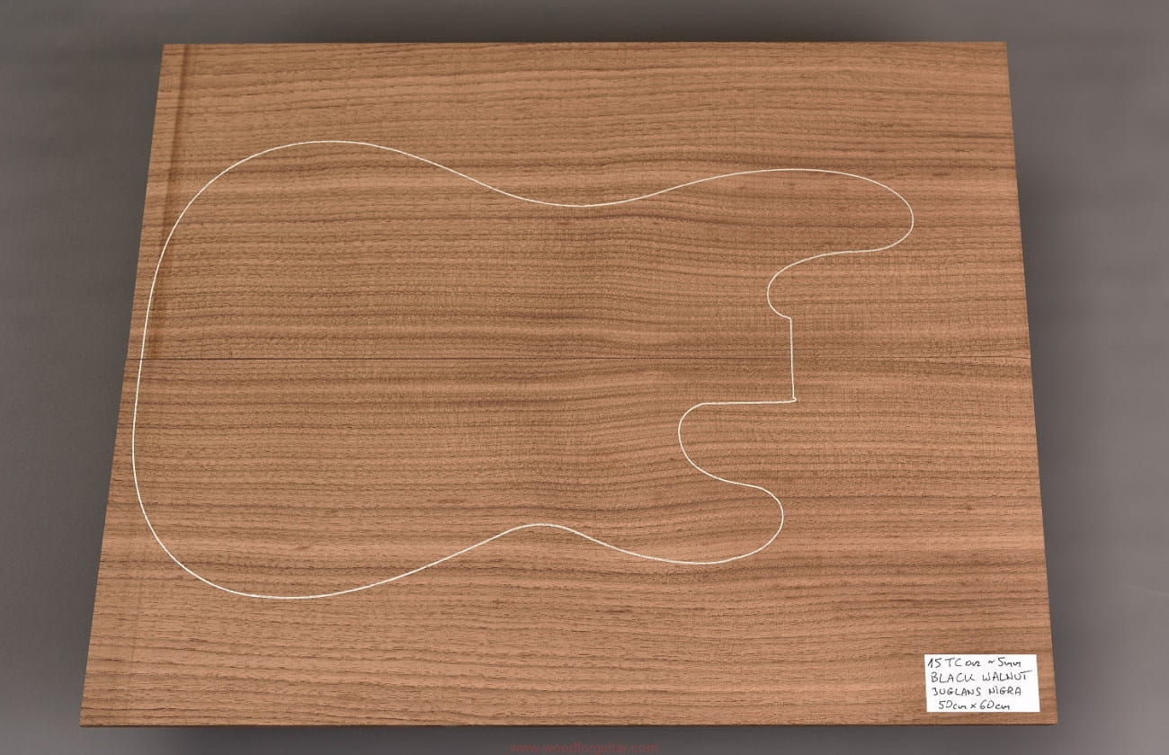 Orzech czarny naturalnie występuje głównie w Ameryce Północnej. W instrumentach jest wykorzystywany okazjonalnie jako korpus lub gryf lub top korpusów instrumentów elektrycznych. Brzmienie tego drewna w gitarach akustycznych i korpusach gitar/basów jest neutralne, nie ociepla dźwięku, jak np. mahoń i nie nadaje takiej ostrości jak np. klon, jednak porównując do brzmienia olchy brzmi nieco wyżej. Zastosowany jako top w gitarach elektrycznych i basowych (lub jako korpus lub część korpusu) wpływa na długie wybrzmiewanie, generowany dźwięk jest solidny, potężny, nie tak "miękki" jak w przypadku mahoniowych konstrukcji, i nie tak ostry jak klon (szczególnie twarde odmiany klonu). Jeśli uważasz, że mahoń zbyt ociepla dźwięk, a klon jest za ostry i twardy, to orzech czarny idealnie sprawdzi się jako tzw. złoty środek. Wspaniale komponuje się akustycznie z hebanowymi podstrunnicami (np. korpus orzech, gryf mahoń, podstrunnica heban). Orzech wymaga zabezpieczenia. Wykończenie lakierem bezbarwnym na wysoki połysk (koniecznie z wypełnieniem porów drewna!) nada niesamowitego wyglądu i głębię 3D. Alternatywne wykończenie olejowe bez wypełniania porów drewna to szlachetna klasyka o miłej w dotyku aksamitnej strukturze. Polecamy na nieszablonowe instrumenty.