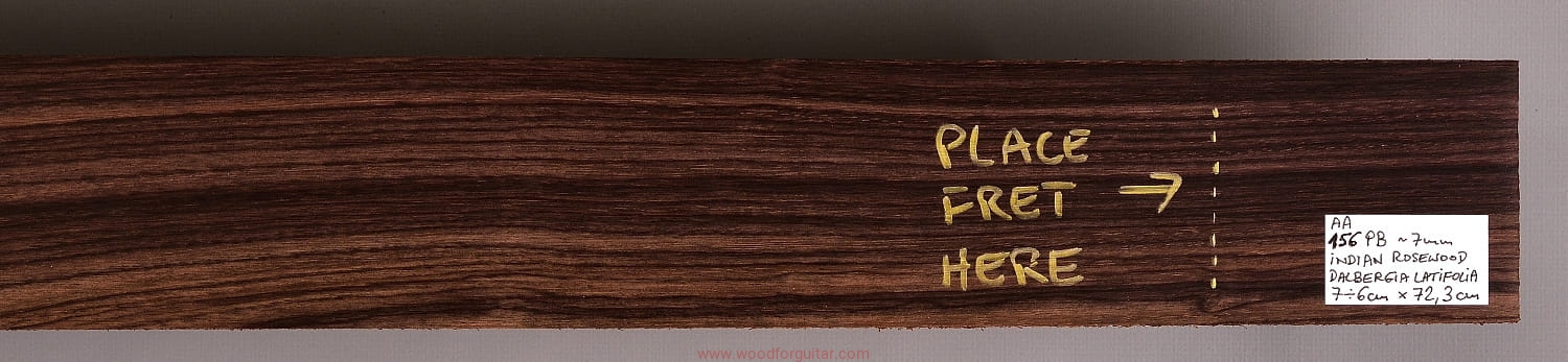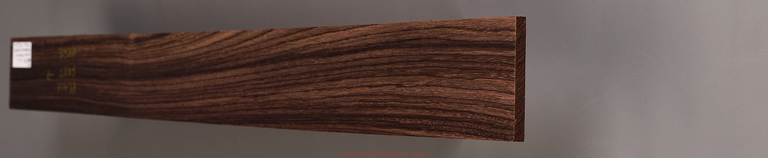 z przeznaczeniem na podstrunnicę gitary basowej lub innego instrumentu strunowego, w ramach którego można wykorzystać przedstawiony produkt. Zdjęcia dotyczą tego konkretnego ewidencjonowanego kawałka drewna. Drewno jest suche, wstępnie oszlifowane powierzchniowo papierem ściernym i jest gotowe do użycia. Dostosowanie wymiarów do własnych celów należy przeprowadzić samodzielnie. Jak zawsze w przypadku pracy z drewnem, zalecamy zaaklimatyzowanie produktu w miejscu docelowym przez okres kilku tygodni. Każdy, nawet najbardziej stabilny gatunek drewna nie jest obojętny na zmiany wilgotności, temperatury i innych czynników zewnętrznych.