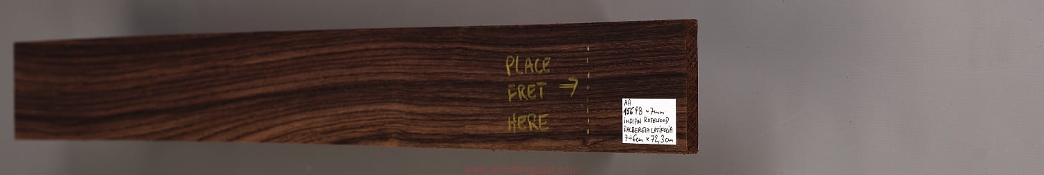 Bardzo popularne i klasyczne drewno, używane od lat głównie na podstrunnice w gitarach elektrycznych, basowych oraz akustycznych. Jak wskazuje nazwa, pochodzi głównie z Indii, ale także rośnie i jest pozyskiwane na Sri Lance oraz w Indonezji. Tonalnie palisander indyjski jest określany jako ciepłobrzmiący, nie oznacza to jednak, że brakuje mu tzw. góry. Kiedy potrzeba generuje zaokrąglone łagodnie brzmiące wysokie przydźwięki i idealnie sprawdza się w instrumentach przeznaczonych do muzyki bluesowej, rockowej lub w instrumentach uniwersalnych. Drewno jest stosunkowo tanie (raczej już niestety było tanie), jednak wysokiej klasy kawałki osiągają ceny porównywalne z czarnym hebanem, dotyczy to również kawałków unikalnych, o specyficznych cechach. Kawałek na podstrunnicę może kosztować 15 dolarów, ale może też kosztować 50 dolarów oraz znacznie więcej. Wygląd palisandra indyjskiego lubi się znacznie różnić. W zależności m.in. od warunków w jakich rosło drzewo, drewno przybiera barwę prawie czarną z ciemno-brązowymi pręgami, najczęściej jednak ma charakterystyczne zabarwienie brązowe, przechodzące w ciemny fiolet, czasami z jaśniejszymi beżowo-żółto-czerwonymi akcentami/pręgami. Łatwe w obróbce, pięknie pachnie, a z powodu dużej zawartości olejków własnych nie wymaga lakierowania. W gotowym instrumencie do czyszczenia i impregnowania wystarczy tylko używać popularnego olejku cytrynowego. Po wyszlifowaniu jest aksamitne w dotyku z wyczuwalnymi porami. Drewno jest mocne, twarde, odporne na ścieranie, pory drewna są dosyć duże i szerokie. Palisander indyjski to wspaniałe i magiczne drewno, które słyszymy w muzyce od pokoleń. Niestety, wieloletnie niekontrolowane masowe wycinki drzew tego gatunku doprowadziły do zbyt daleko posuniętego zaniku palisandra indyjskiego w przyrodzie, dlatego podjęto decyzję o objęciu tego gatunku szczególną ochroną i wpisaniu go na listę gatunków zagrożonych (CITES). Sprzedaż gatunku Dalbergia latifolia prowadzimy tylko do krajów Unii Europejskiej, proszę mieć na uwadze, że wszelkie przekroczenia granicy UE instrumentu z nawet niewielkim elementem wykonanym z tego drewna z/do Unii Europejskiej wymagają specjalnych pozwoleń Ministerstwa Środowiska lub odpowiednika tej instytucji w danym kraju. Brak pozwoleń skutkuje zarekwirowaniem drewna lub całego instrumentu przez służby celne.