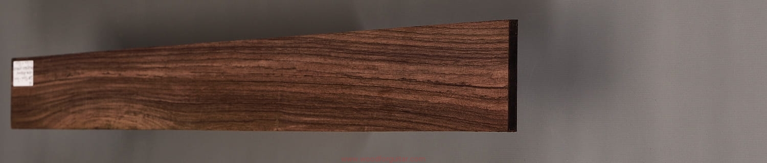 z przeznaczeniem na podstrunnicę gitary basowej lub innego instrumentu strunowego, w ramach którego można wykorzystać przedstawiony produkt. Zdjęcia dotyczą tego konkretnego ewidencjonowanego kawałka drewna. Drewno jest suche, wstępnie oszlifowane powierzchniowo papierem ściernym i jest gotowe do użycia. Dostosowanie wymiarów do własnych celów należy przeprowadzić samodzielnie. Jak zawsze w przypadku pracy z drewnem, zalecamy zaaklimatyzowanie produktu w miejscu docelowym przez okres kilku tygodni. Każdy, nawet najbardziej stabilny gatunek drewna nie jest obojętny na zmiany wilgotności, temperatury i innych czynników zewnętrznych.